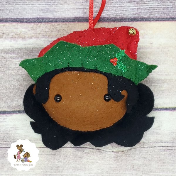 Handsewn felt stuffed Santa's Helper ornament. Christmas ornament dimension: 3.5 inches in height and 2.5 inches wide.